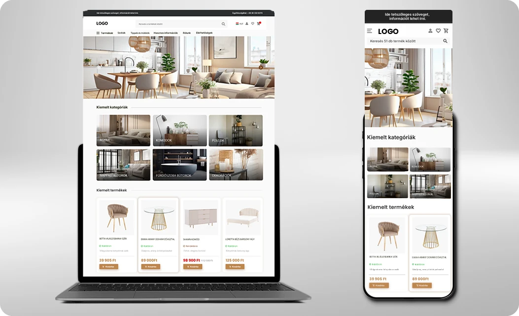 Értékesítésre felkészített, testreszabható designokra építhetsz vagy akár egyedi megjelenése is lehet a webshopodnak.